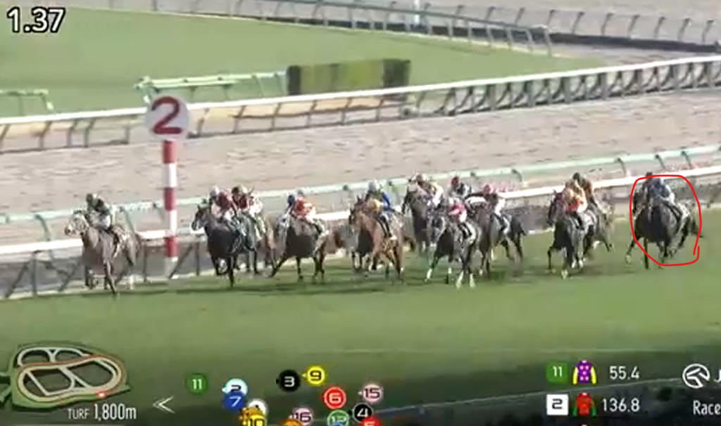 当馬は半年の休み明けで+6kg。ゲートで出遅れて後方待機も、直線だけで10頭ゴボウ抜きの3着。負けて強しの内容ではある。ただ内容をよく見ると、意図的に仕掛けを遅らせているという事実もある。ゴーサインを出したのが、残り180m地点なのだ。